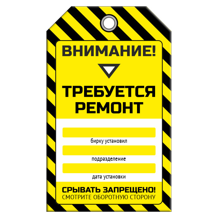 Бирка «ТРЕБУЕТСЯ РЕМОНТ!» (1 шт., двусторонняя, пластик, 70х115 мм) в Южно-Сахалинске купить