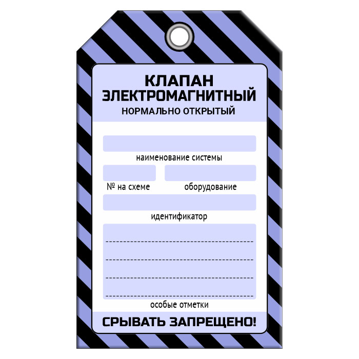 Бирка «КЛАПАН ЭЛЕКТРОМАГНИТНЫЙ НОРМАЛЬНО ОТКРЫТЫЙ» (1 шт., односторонняя, пластик, 70х115 мм) в Южно-Сахалинске купить