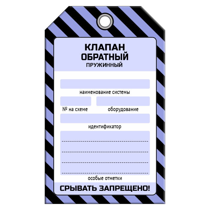 Бирка «КЛАПАН ОБРАТНЫЙ ПРУЖИННЫЙ» (1 шт., односторонняя, пластик, 70х115 мм) в Южно-Сахалинске купить