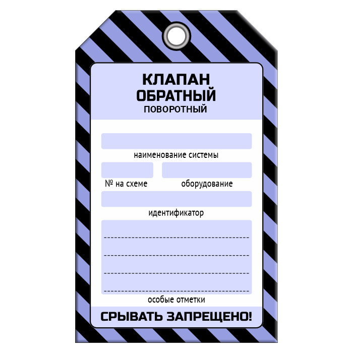 Бирка «КЛАПАН ОБРАТНЫЙ ПОВОРОТНЫЙ» (1 шт., односторонняя, пластик, 70х115 мм) в Южно-Сахалинске купить