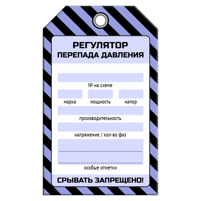 Бирка «РЕГУЛЯТОР ПЕРЕПАДА ДАВЛЕНИЯ» (1 шт., односторонняя, пластик, 70х115 мм) в Южно-Сахалинске купить