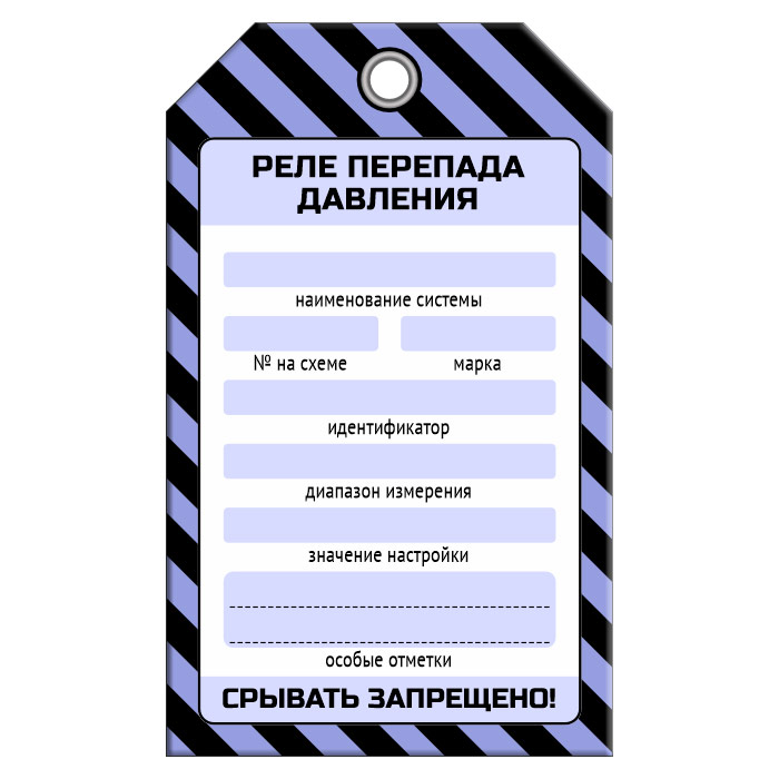 Бирка «РЕЛЕ ПЕРЕПАДА ДАВЛЕНИЯ» (1 шт., односторонняя, пластик, 70х115 мм) в Южно-Сахалинске купить