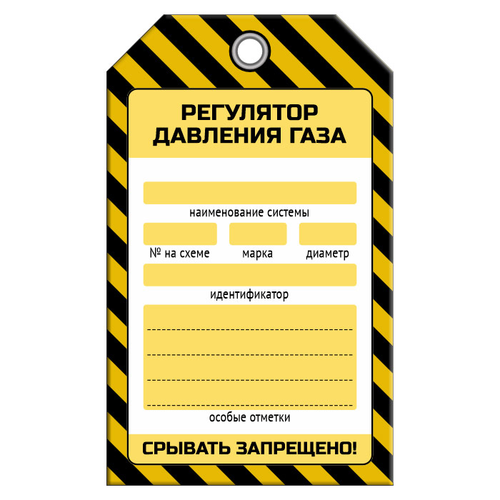 Бирка «РЕГУЛЯТОР ДАВЛЕНИЯ ГАЗА» (1 шт., односторонняя, пластик, 70х115 мм) в Южно-Сахалинске купить