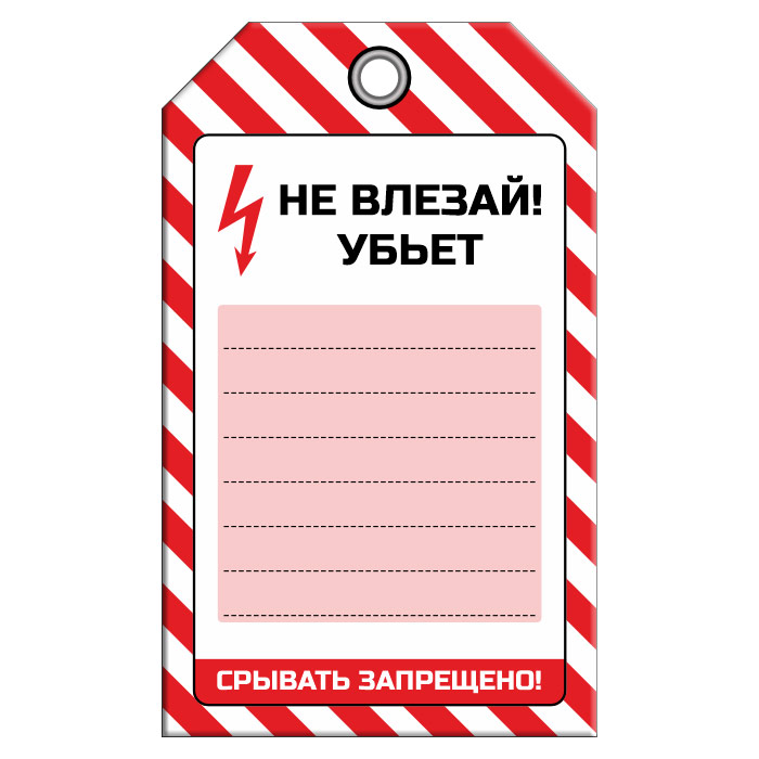 Бирка «НЕ ВЛЕЗАЙ! УБЪЕТ» (1 шт., односторонняя, пластик, 70х115 мм) в Южно-Сахалинске купить