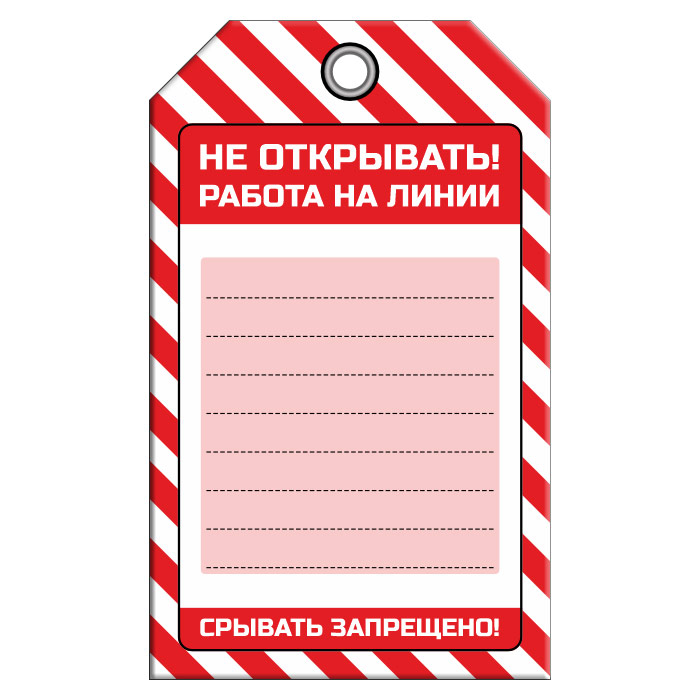 Бирка «НЕ ОТКРЫВАТЬ! РАБОТА НА ЛИНИИ» (1 шт., односторонняя, пластик, 70х115 мм) в Южно-Сахалинске купить