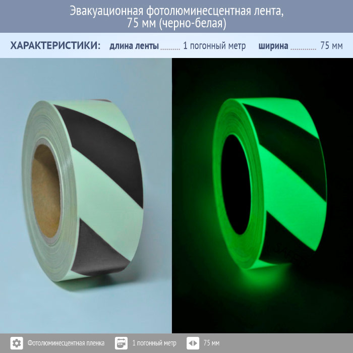 Эвакуационная фотолюминесцентная лента, 75 мм (черно-белая) в Южно-Сахалинске купить