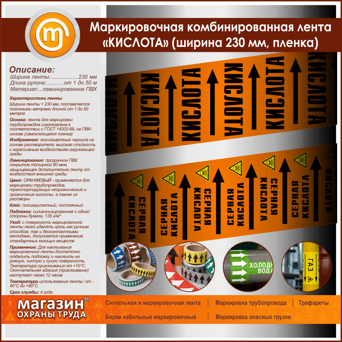 Маркировочная комбинированная лента «КИСЛОТА» (ширина 230 мм, самоклеящаяся плёнка) в Южно-Сахалинске купить