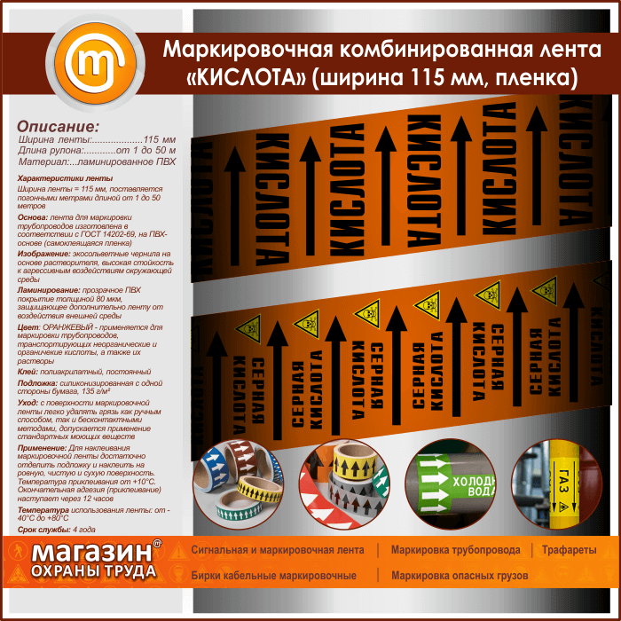 Маркировочная комбинированная лента «КИСЛОТА» (ширина 115 мм, самоклеящаяся плёнка с ламинированием) в Южно-Сахалинске купить
