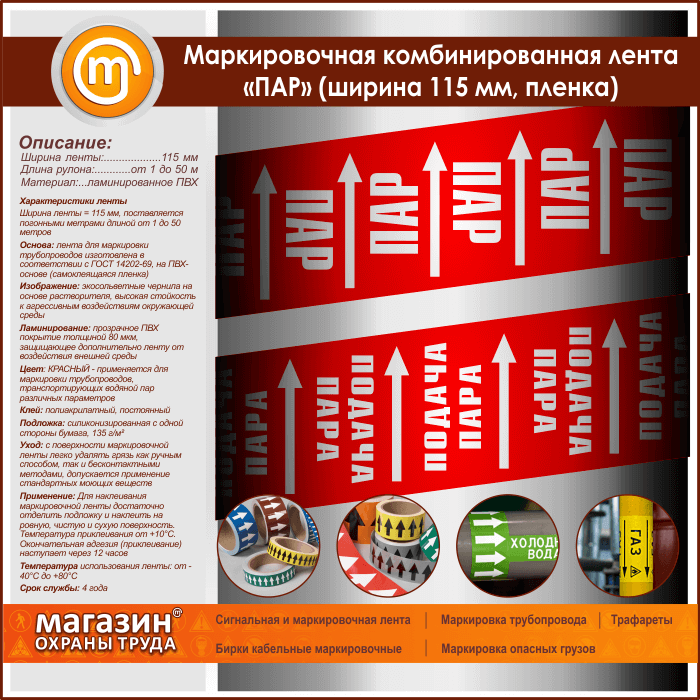 Маркировочная комбинированная лента «ПАР» (ширина 115 мм, самоклеящаяся плёнка) в Южно-Сахалинске купить