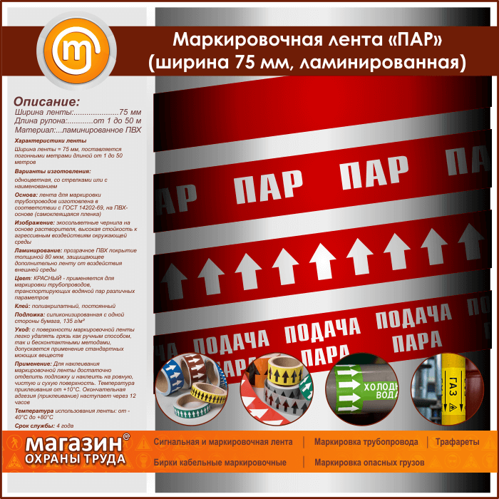 Маркировочная лента «ПАР» (ширина 75 мм, самоклеящаяся плёнка с ламинированием) в Южно-Сахалинске купить