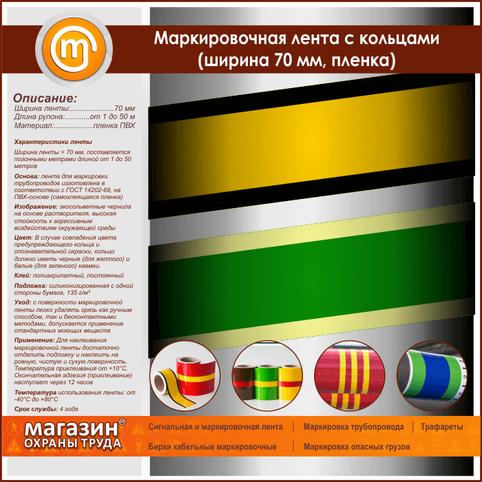 Маркировочная лента с кольцами (ширина 70 мм, самоклеящаяся плёнка) в Южно-Сахалинске купить