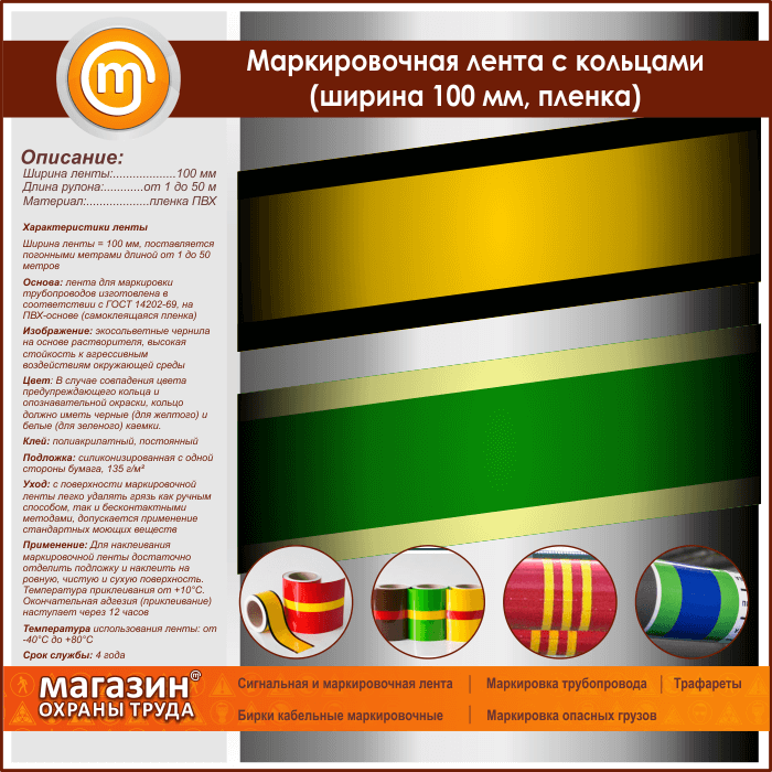 Маркировочная лента с кольцами (ширина 100 мм, самоклеящаяся плёнка) в Южно-Сахалинске купить