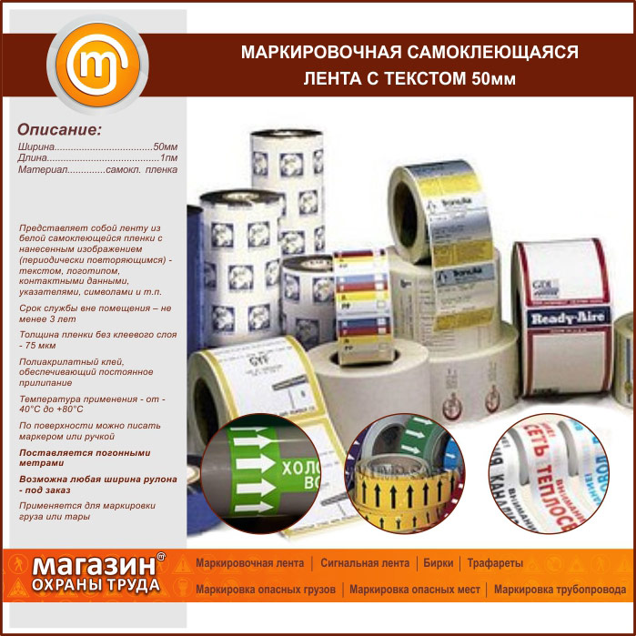 Маркировочная самоклеящаяся лента с текстом 50 мм в Южно-Сахалинске купить