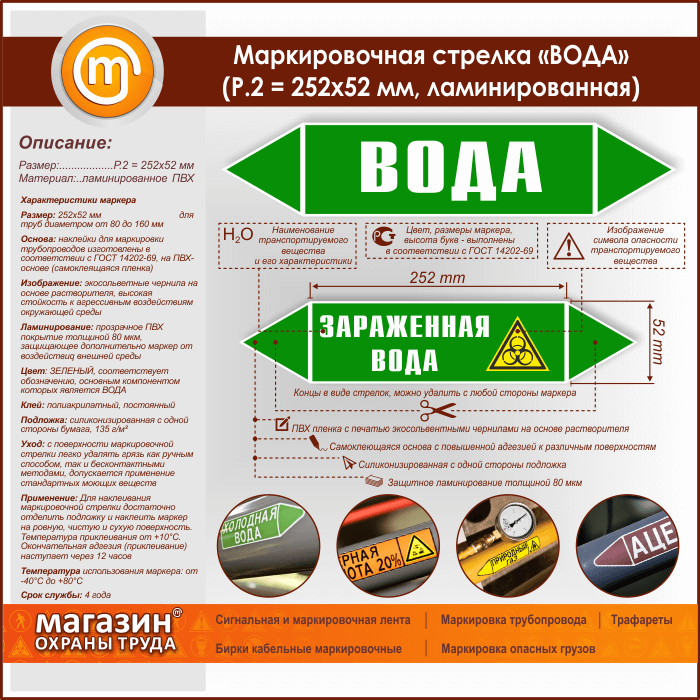 Маркировочная стрелка «ВОДА» (P.2 = 252х52 мм, самоклеящаяся плёнка с ламинированием) в Южно-Сахалинске купить