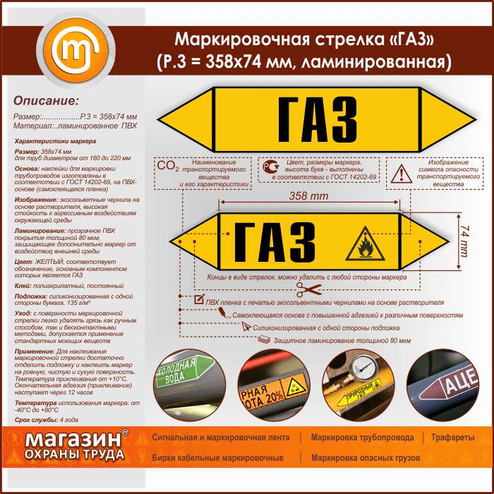 Маркировочная стрелка «ГАЗ» (P.3 = 358х74 мм, самоклеящаяся плёнка с ламинированием) в Южно-Сахалинске купить