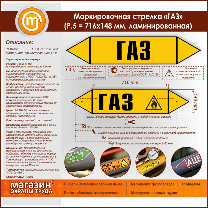 Маркировочная стрелка «ГАЗ» (P.5 = 716х148 мм, самоклеящаяся плёнка с ламинированием) в Южно-Сахалинске купить