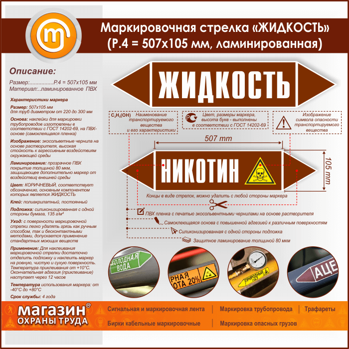 Маркировочная стрелка «ЖИДКОСТЬ»(P.4 = 507х105 мм, самоклеящаяся плёнка с ламинированием) в Южно-Сахалинске купить