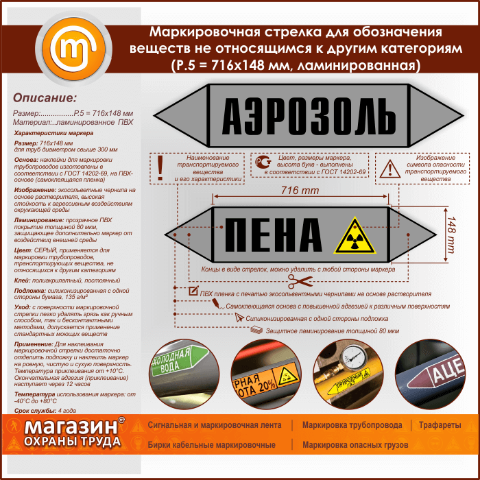 Маркировочная стрелка «ПРОЧИЕ ВЕЩЕСТВА» (P.5 = 716х148 мм, самоклеящаяся плёнка с ламинированием) в Южно-Сахалинске купить