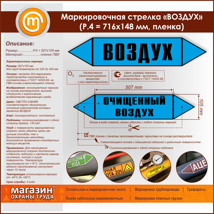 Маркировочная стрелка «ВОЗДУХ» (P.4 = 507х105 мм, самоклеящаяся плёнка) в Южно-Сахалинске купить