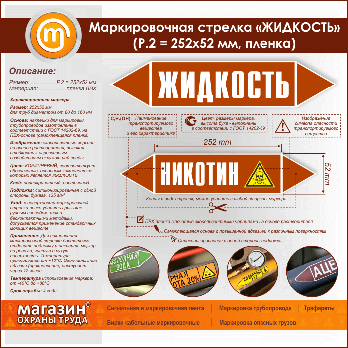Маркировочная стрелка «ЖИДКОСТЬ» (P.2 = 252х52 мм, самоклеящаяся плёнка) в Южно-Сахалинске купить
