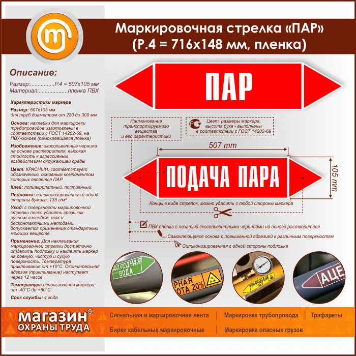 Маркировочная стрелка «ПАР» (P.4 = 507х105 мм, самоклеящаяся плёнка) в Южно-Сахалинске купить
