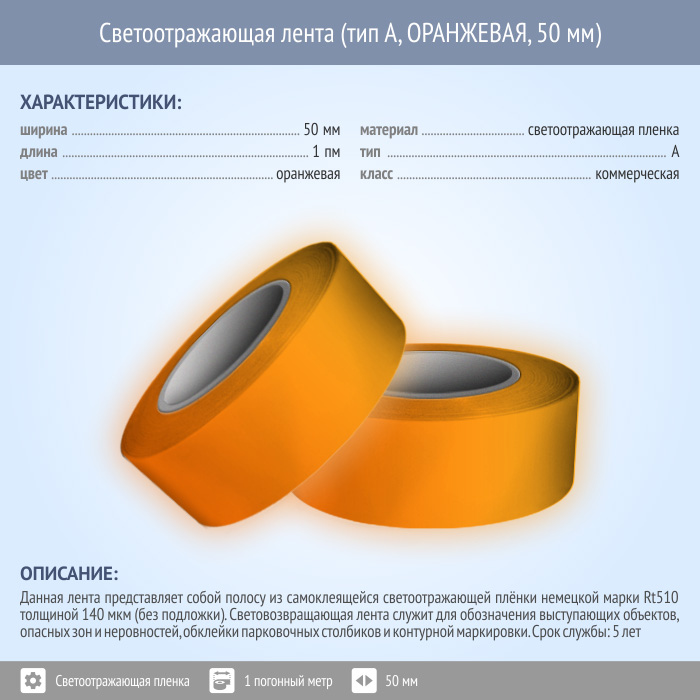 Светоотражающая однородная лента (тип А, ОРАНЖЕВАЯ, 50 мм х 1 п.м.) в Южно-Сахалинске купить