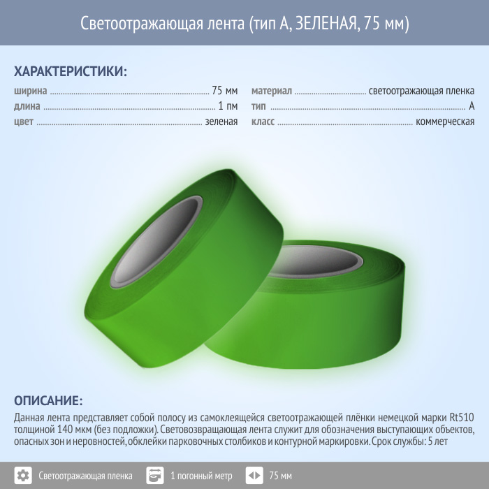 Светоотражающая однородная лента (тип А, ЗЕЛЕНАЯ, 75 мм х 1 п.м.) в Южно-Сахалинске купить