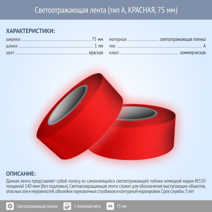 Светоотражающая однородная лента (тип А, КРАСНАЯ, 75 мм х 1 п.м.) в Южно-Сахалинске купить