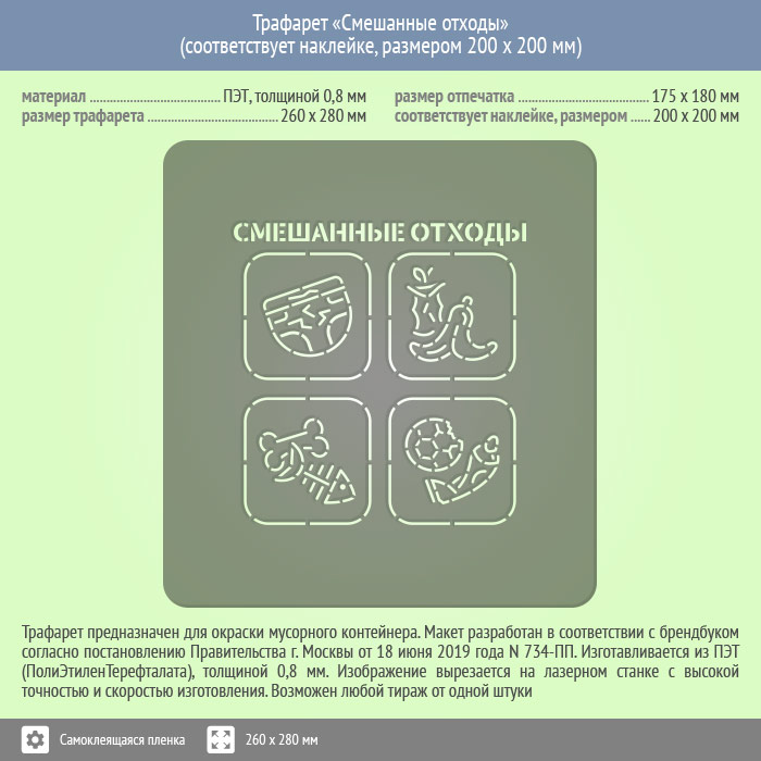 Трафарет «Смешанные отходы» (соответствует наклейке, размером 200х200 мм) в Южно-Сахалинске купить