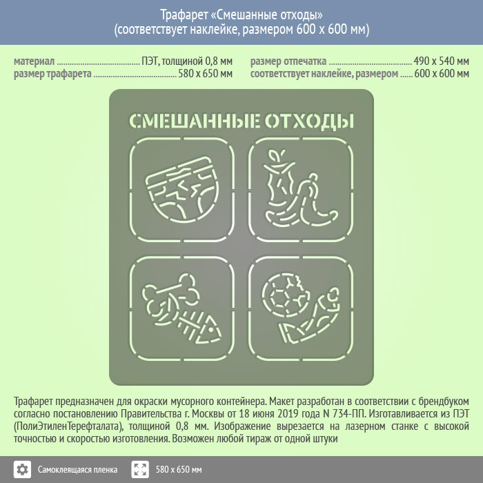 Трафарет «Смешанные отходы» (соответствует наклейке, размером 600х600 мм) в Южно-Сахалинске купить