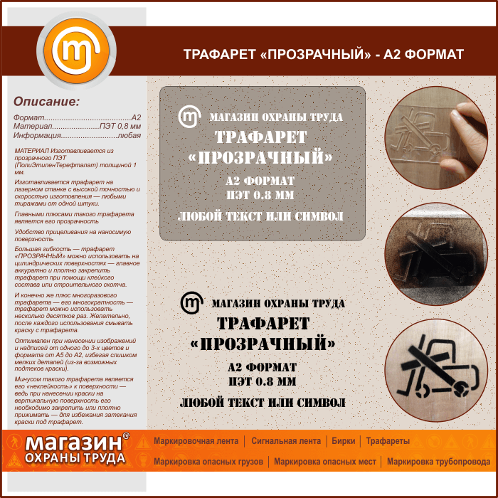 Трафарет «ПРОЗРАЧНЫЙ» (А2 формат, ПЭТ 0,8 мм) в Южно-Сахалинске купить